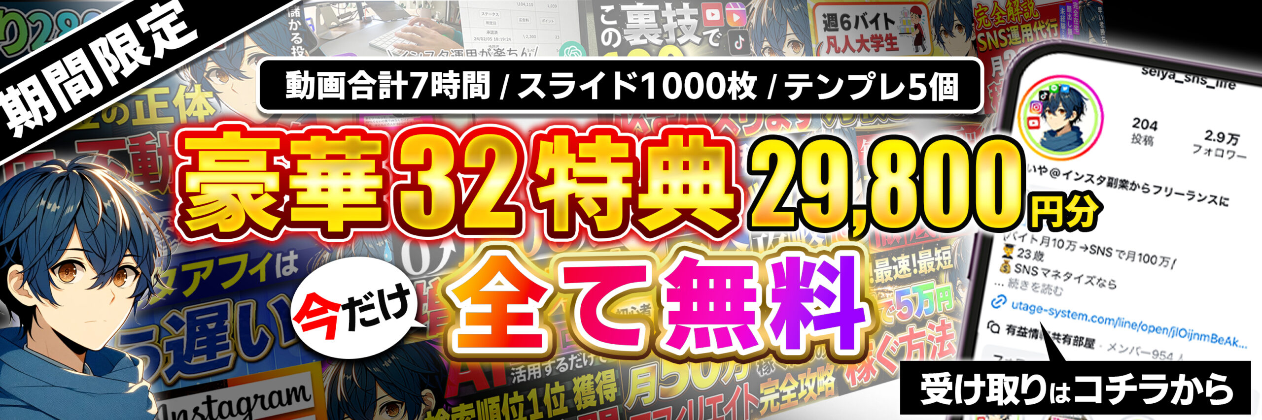 豪華32大特典は下記のLINEより追加してお受け取りください。