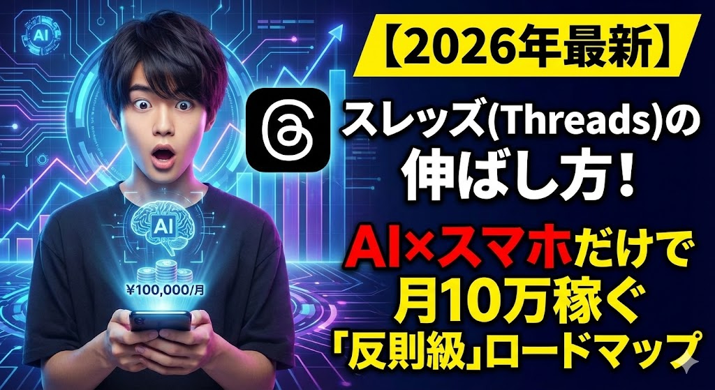 【2026年最新】スレッズ(Threads)の伸ばし方!AI×スマホだけで月10万稼ぐ「反則級」ロードマップ