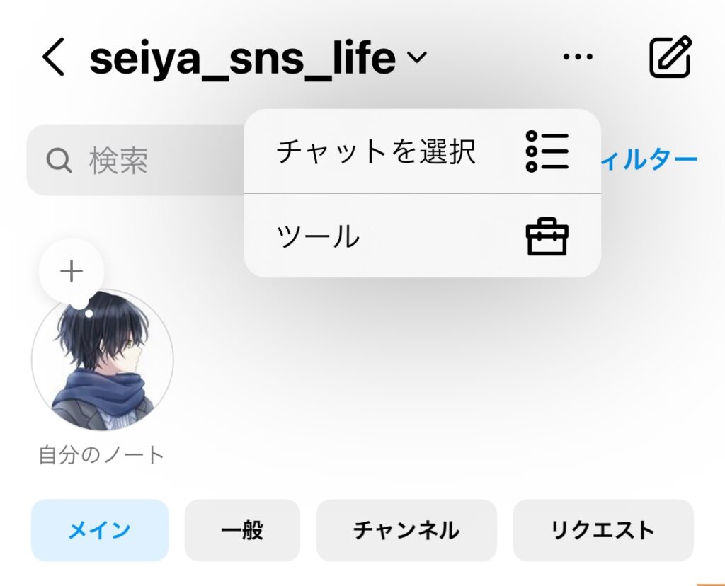 DMの点線を押して、「ツール」を選択