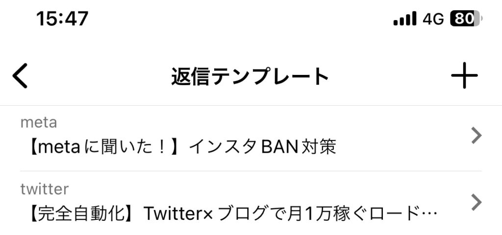 そして、合言葉を送ってくれた人に対して、その文字を打てば、瞬時にDMで、記事リンクとかを送れます!