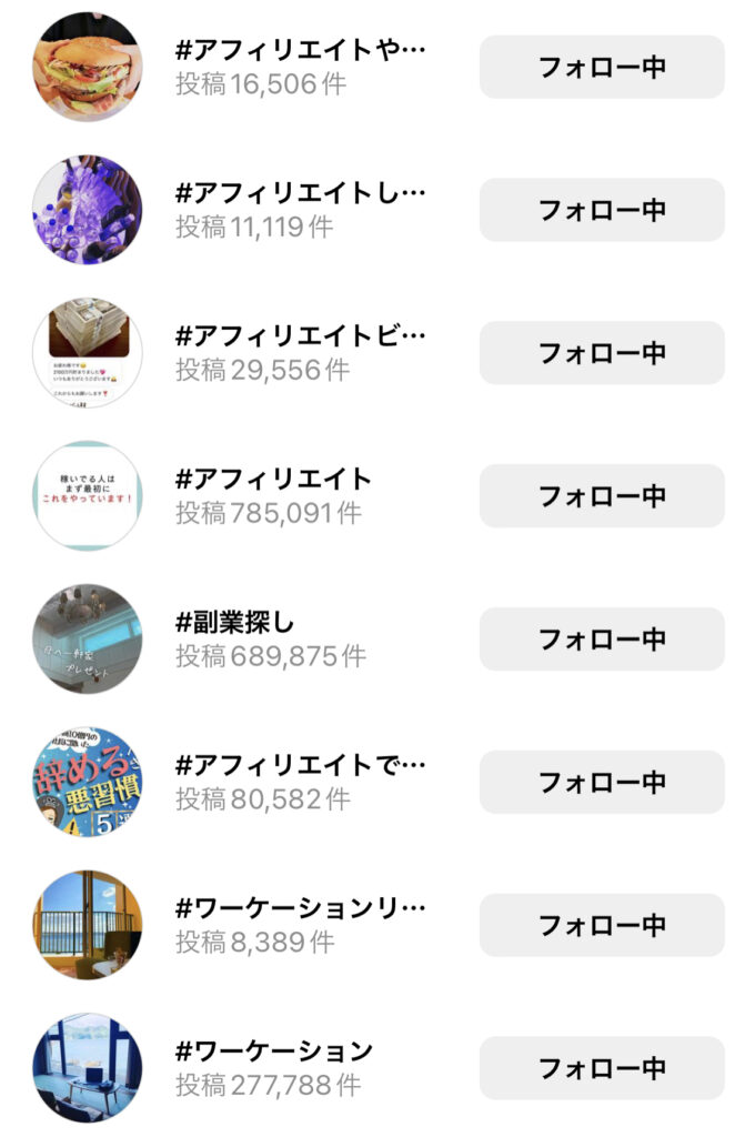 僕はこんな感じに、ジャンル認知のためにハッシュタグをフォローしています!
