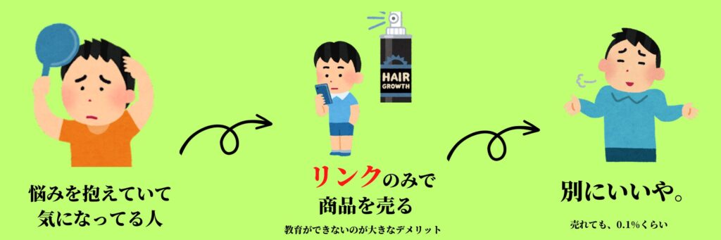 当たり前ですが、アフィリエイトリンクを貼るだけではお金になりません。