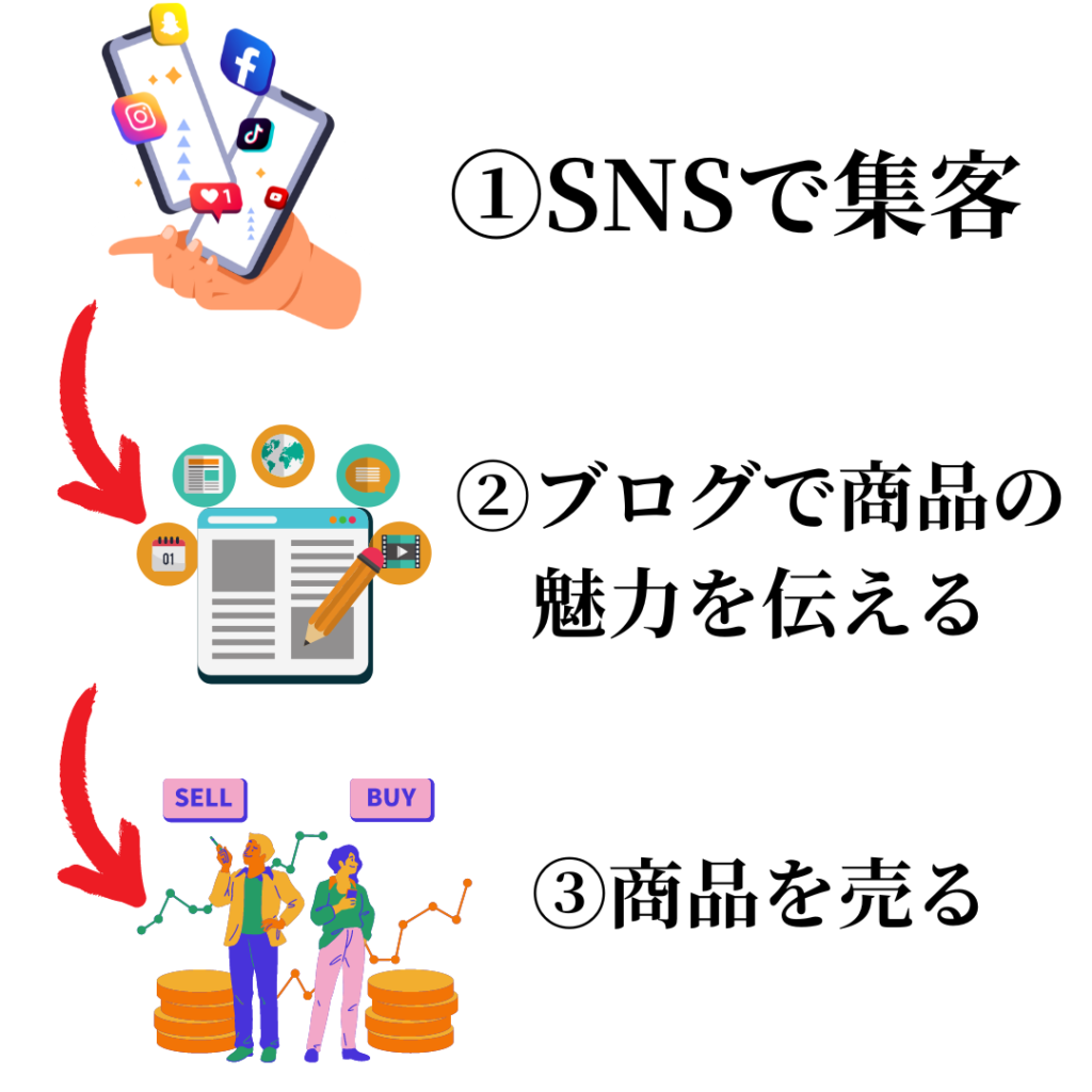 「どうやって商品を紹介すればいいのか?」のパートでも話しましたが、ブログはあくまでも、売れやすくするための手段。