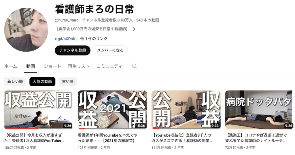 すると、この看護師の方の動画での収益公開が180万再生回っていました。