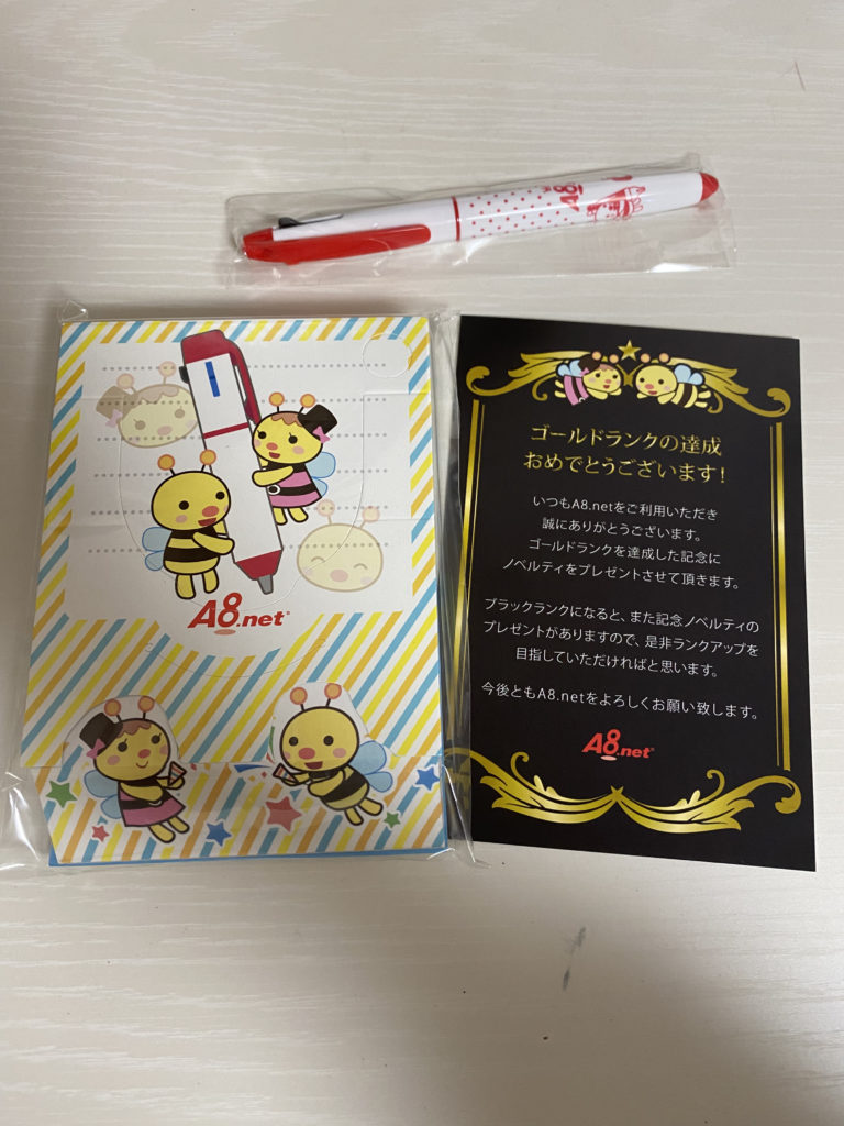 大手アフィリエイトASPのA8.netさんから、ゴールドランク達成の記念に、ノベルティをいただきました!