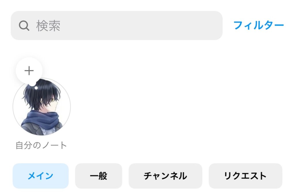 「メイン」「一般」「チャンネル」「すべて」「リクエスト」