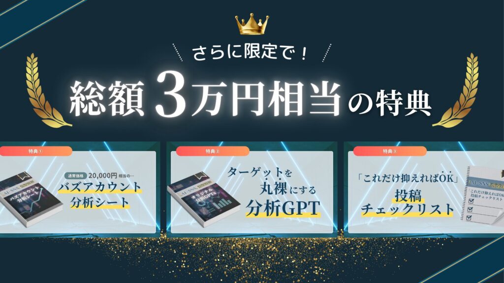 “今だけ”3万円相当の特典も用意しています。