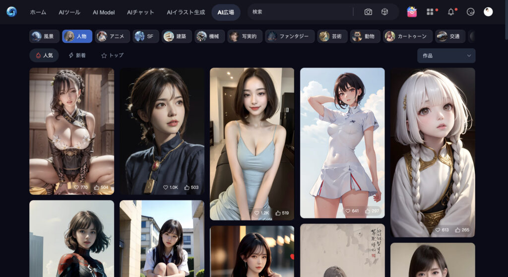 ほとんどAI美女画像がランクインしています。