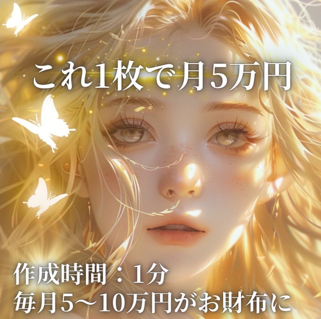 また、AI画像で月5万円稼ぐ方法ならこれです!↓
