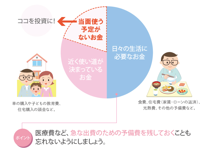 だからと言って、貯金を全部、投資するのはNGだよ!!