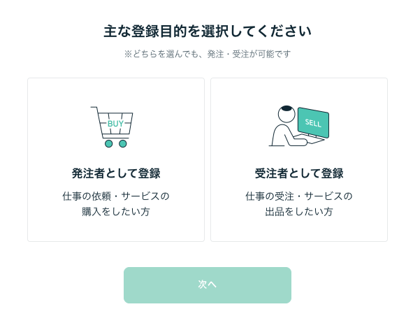 そしたら、右側の発注者として登録を選択しましょう!↓