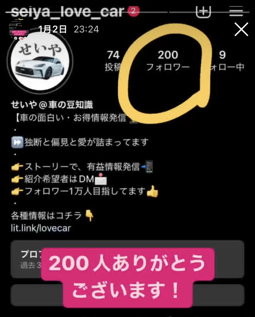 好きな車の情報発信から、SNS攻略のアカウントを立ち上げ、今に至ります。