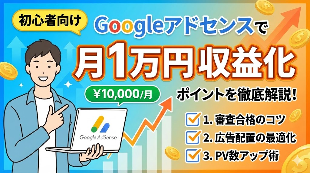 今回は、Googleアドセンスを活用して、初心者が最短で月1万円の壁を突破するためのポイントを徹底解説します。