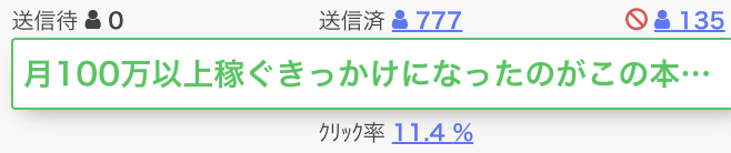 公式ラインでは、僕がメッセージを送信した時のURLのクリック数や率。