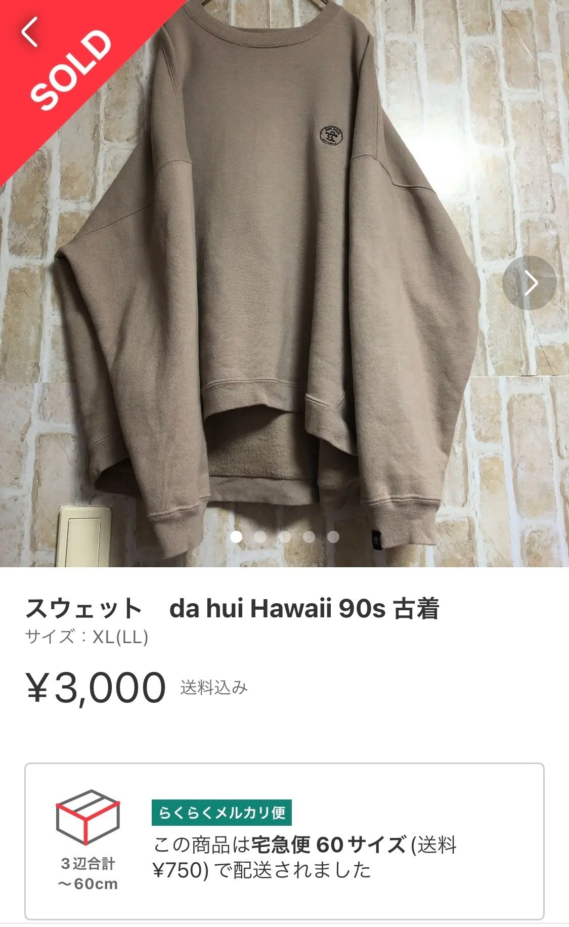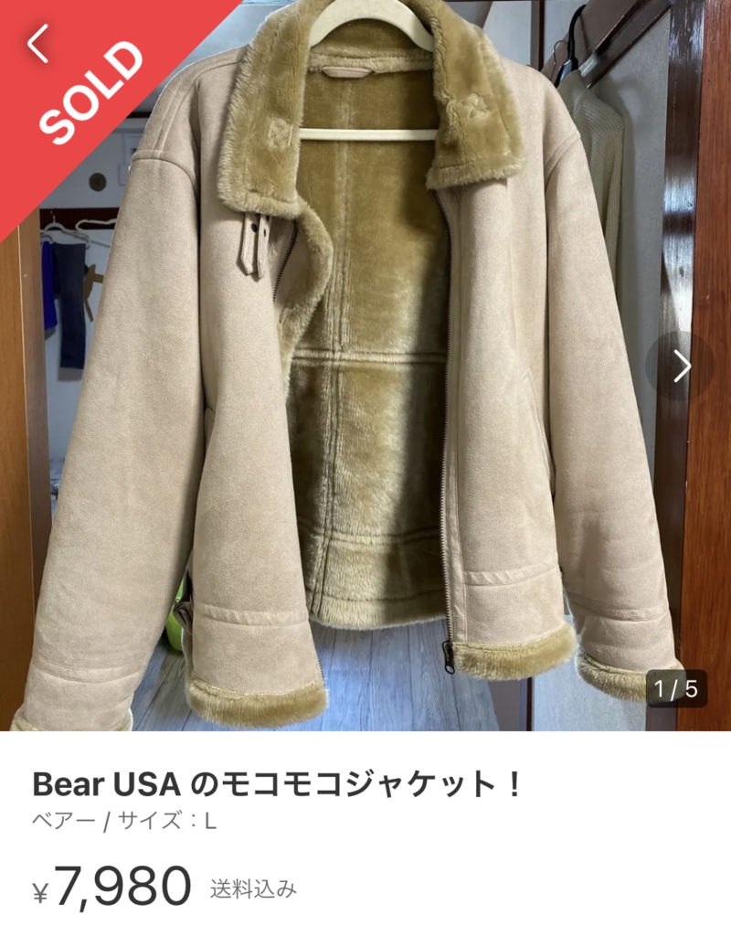 これは、自分が1年きていて、出すだけ、メルカリ出してみよ〜と思って出したら売れちゃったやつです。