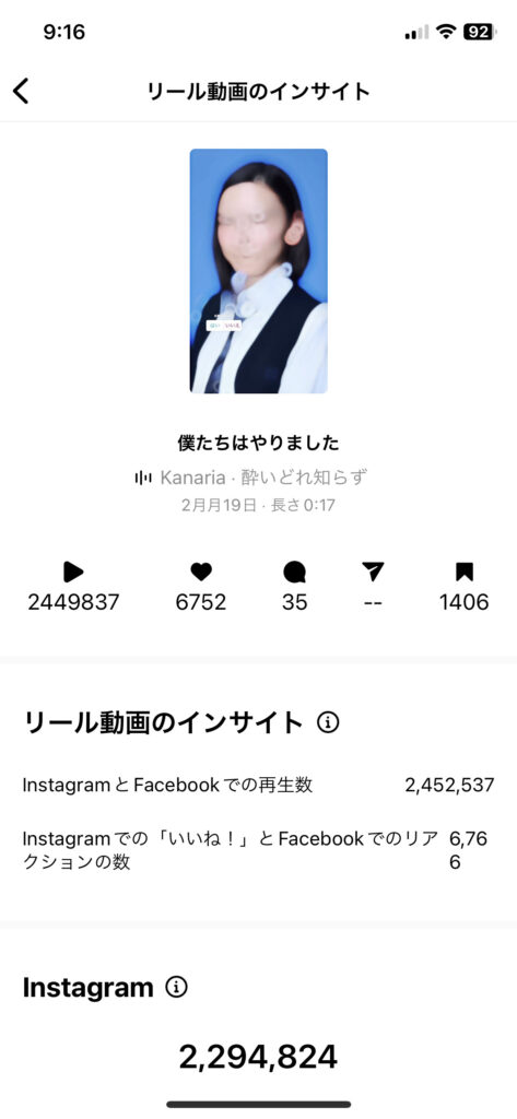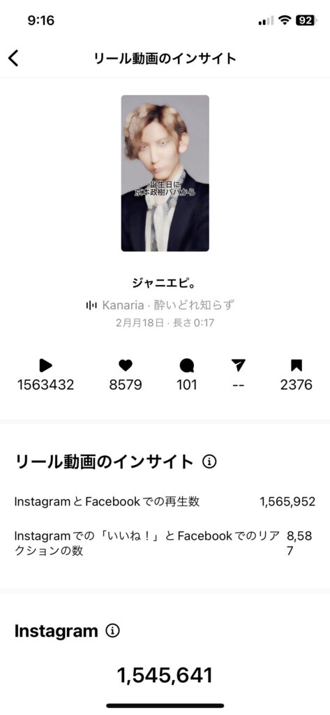 僕のリール投稿の場合、
