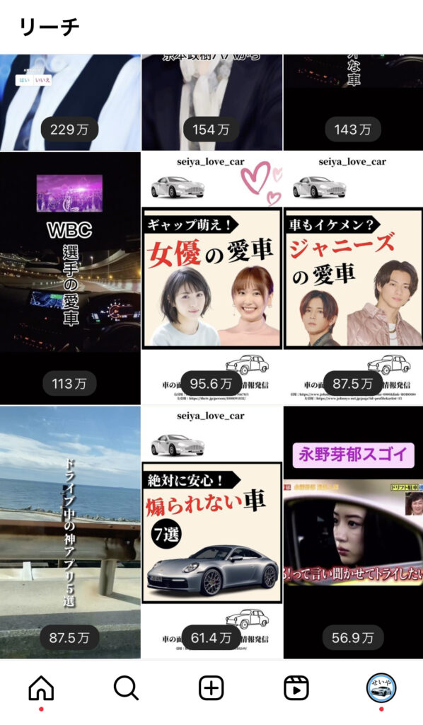 結論→まだ投稿数も少ないのに、リールだけ載せるのはあまり得策ではありません