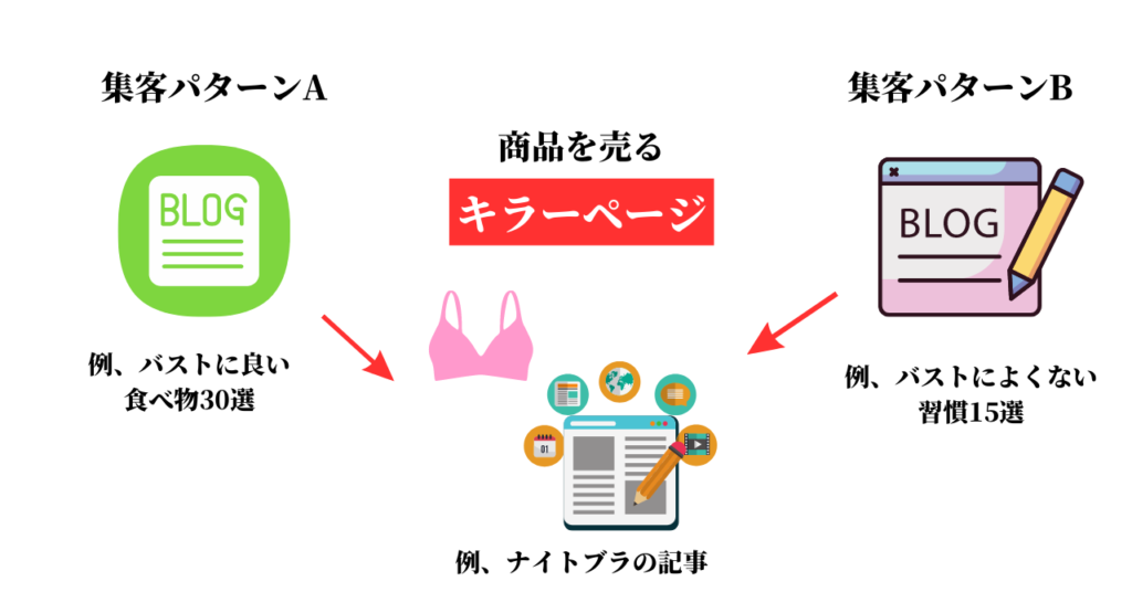 全部の記事では、販売するのではなく、「キラーページ」と呼ばれる売上を作るページを作成して、そこに流す感じがオススメ!