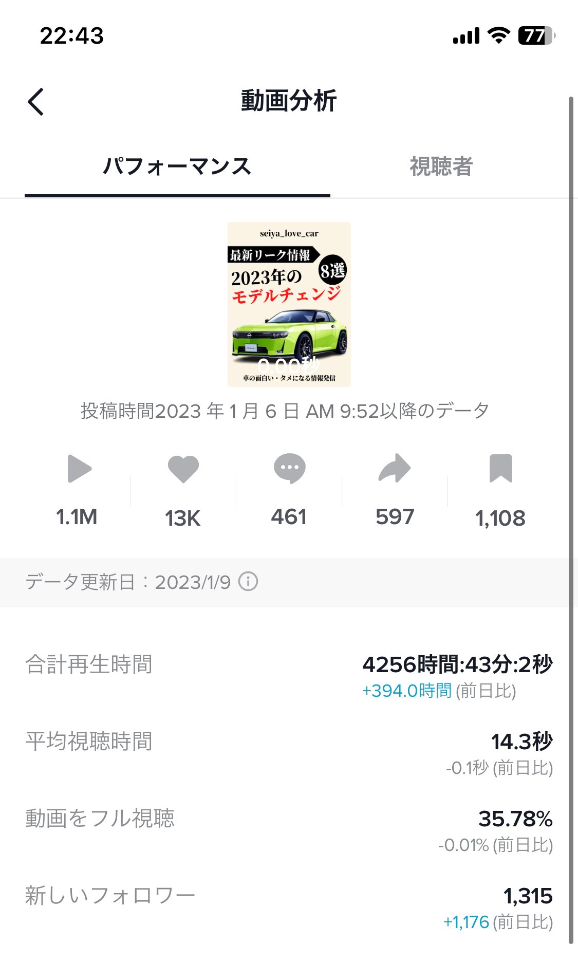 また、Tiktokも、ただ、車の投稿をするだけでなく、いただいた画像に一言コメントを添えて、コメントを促しエンゲージメントを増やすように工夫しました。