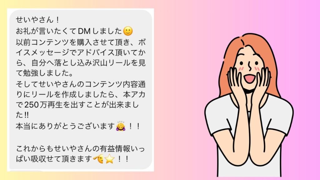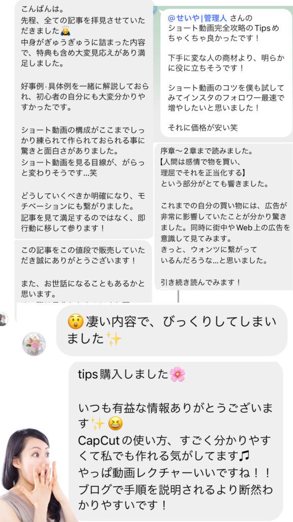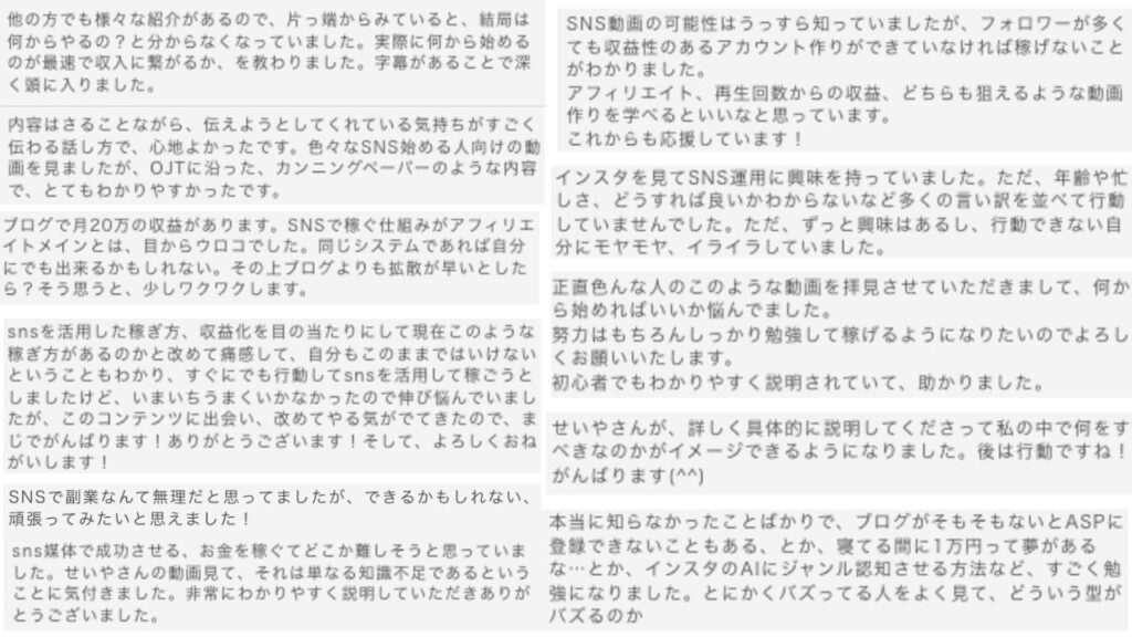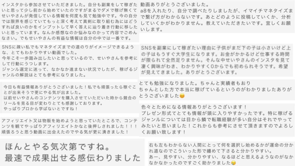 実際に、いただいたコンテンツ内容の感想です!(100通以上あるので、最後にも載せておきます)