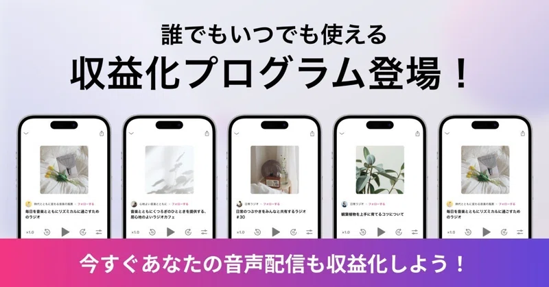今後、youtubeくらい主流になる時代も来るかもしれませんが、音声のみなので、大きなユーザー数を見込めることは難しいかなと思います。