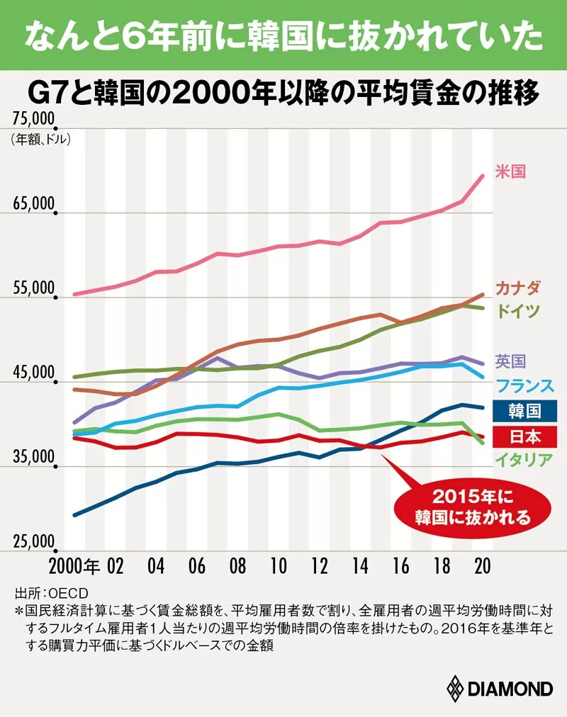 他先進国では、上昇傾向である賃金も、日本では横ばい。