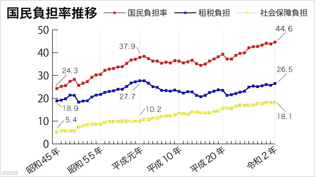 税金や年金などの、負担額が年々上昇してます。