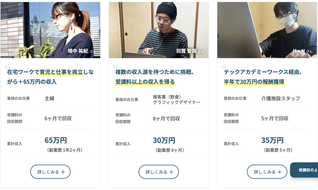 また、実際に、ある程度スキルを学んだら、サポートしてもらいながら実際のお仕事をできるのも、テックアカデミーの最大のメリットですね!