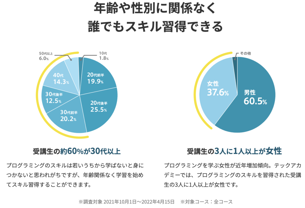 実際、女性が、3人に1人。受講生の60%は、30代以上と、必ずしも、私じゃ遅い...なんてことがないのです!