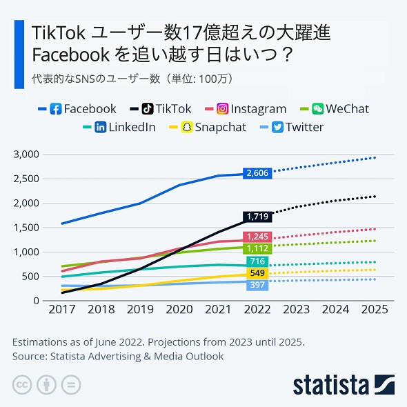 今、Tiktokは、ユーザ数が伸び続けています。つまり、今後も市場として熱いジャンルになります。