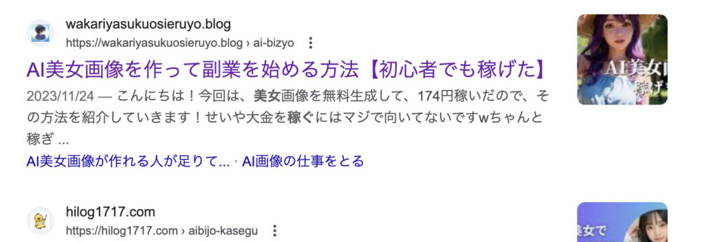 そうすると、「AI美女 稼ぐ」とこんな感じにググるかと思います。