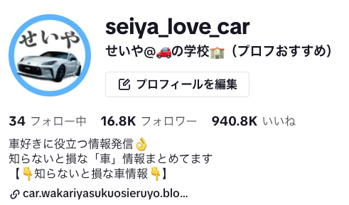 僕の場合、こちらのアカウントをやる際、車に少し興味あるな〜ぐらいのノリで始めました。