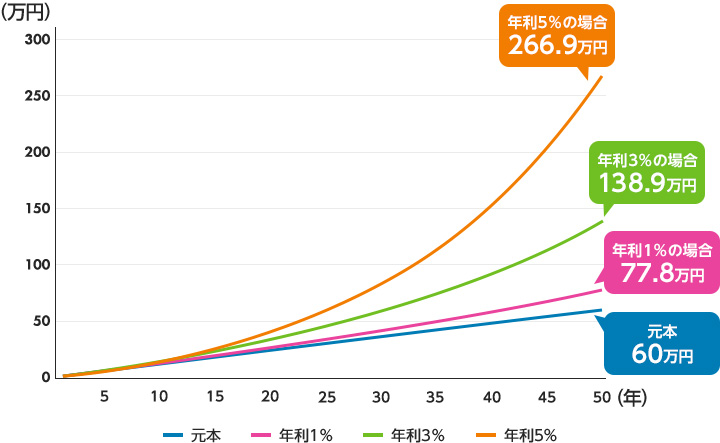 そのため、数年程度では大きな差がありませんが、20〜30年とその後に大きな差ができるのです。