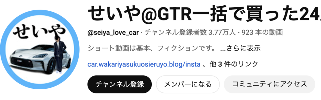 僕は車のチャンネルを運営しておりこのアカウントがあります↓