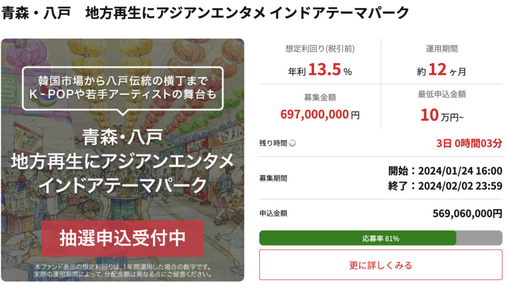 他のクラファン投資は、最低投資金額10万円のところが多いが、1万円から投資ができます。
